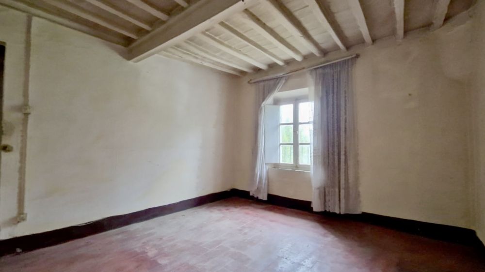 Le due abitazioni sono libere: vi è la possibilità di formare un solo appartamento perché esiste la scala interna che dal piano terreno raggiunge la soffitta. Attualmente è chiusa ma aprendola può formarsi un'abitazione con 10 stanze. Il tetto della casa è stato ricostruito (gettata, isolante e tegole) 4/5 anni fa mentre le stanze sono da ristrutturare insieme agli infissi Davanti all'ingresso dell' immobile si apre un ampio piazzale con in fronte una costruzione in muratura adibita a magazzino/garge di circa 20 mq. La linea dei servizi pubblici ha la fermata a 10 metri dalla casa. Le condotte dell'acqua potabile e del gas hanno l'attacco all'angolo del fabbricato mentre la linea elettrica è incassata nel muro della facciata. L'immobile dispone di Vasca Imhoff (dimensioni cm 110; altezza cm 150 tre anelli, capacità It 1330 per servire varie persone) con drenaggio in terreno di proprietà. Annesso alla casa c'è una superficie di terra per destinarla a giardino di circa 380 mq. Richiesta 129.000 euro - Rif. 12158